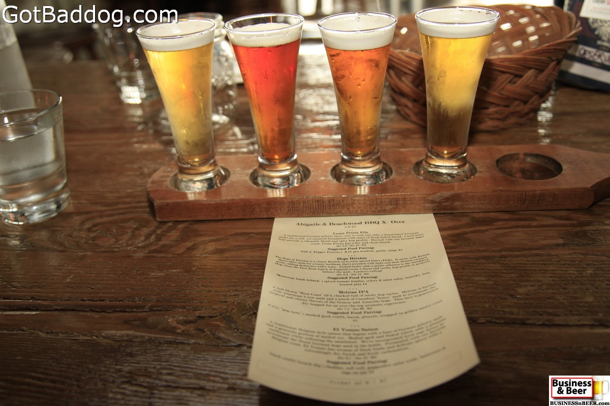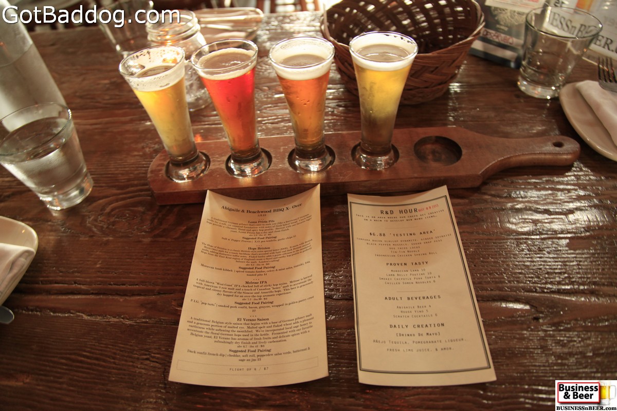 These photos are from our Business and Beer gathering with Meetup last Thursday, May 9, at The Brewery at Abigaile. I cannot really say why I am just now getting around to posting the photos, other than it was a busy weekend. The Brewery at Abigaile is my favorite brewpub and is located in Hermosa Beach. I was introduced to them one year ago and became an instant fan. Last Thursday was a special evening at Abigaile in that they were doing a food pairing with Beachwood BBQ & Brewing from Long Beach and they are another of my favorite local brewers, so it was a very good night to be at Abigaile.