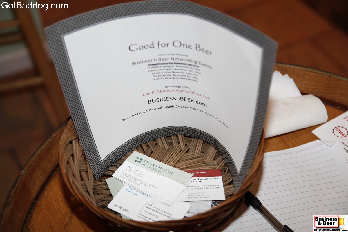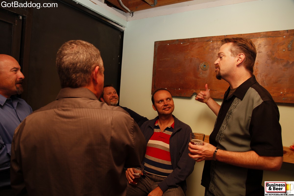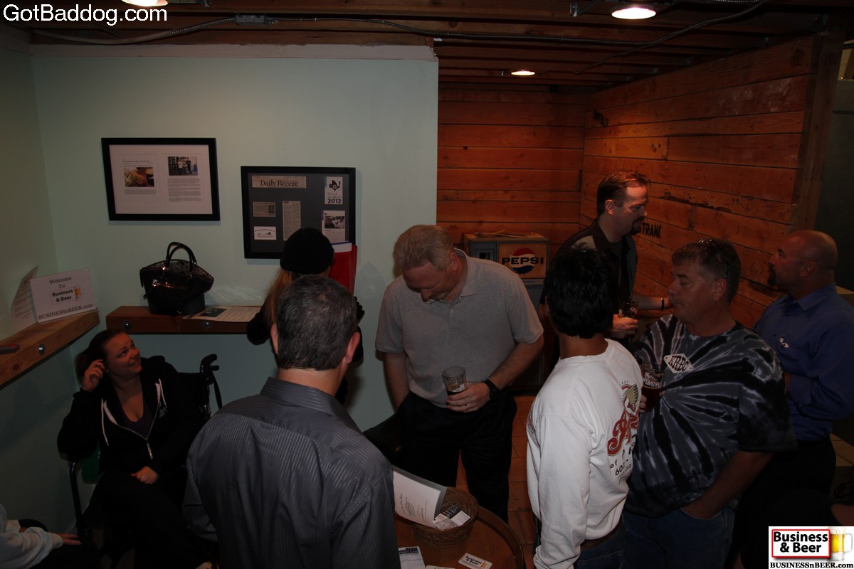 These photos are from our most recent Business & Beer gathering which we had at Strand Brewing Company in Torrance. Strand Brewing is a local microbrewery that has been growing by leaps and bounds over the last several months. I remember when I first started going there, there would be maybe three or four people on a Saturday afternoon. These days you and more likely to find 15-20 on a Thursday evening. I can imagine that Saturdays are even better. We had about 20 people show up for Business & Beer which was about double of what I expected; it is pretty obvious that we are really growing and that Strand Brewing Company is a crowd favorite. One of the co-owners, Rich Marcello, was manning the taps Thursday and as he is a big proponent of networking, he is always sending interested patrons our way. We do appreciate it, Rich.