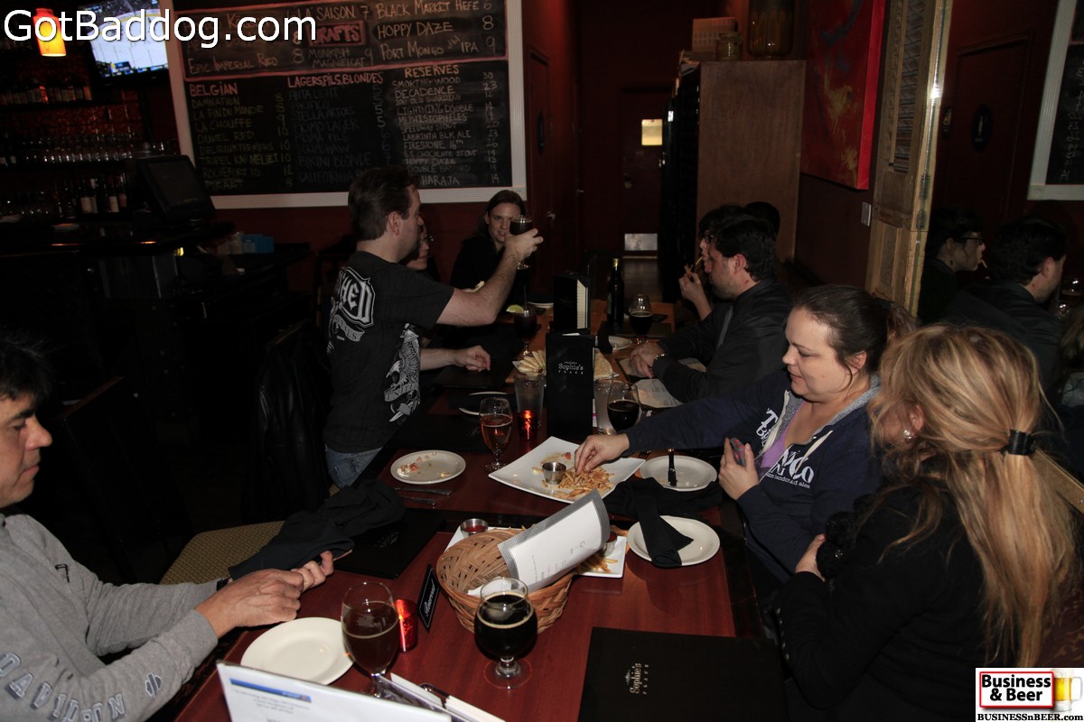 These photos are from our weekly Business & Beer gathering, which was held last night at Sophie\’s Place in the Riviera Village section of Redondo Beach. Sophie\’s Place is a family run gastropub, run by three brothers, and it is one place that always makes us feel like family; whether we come in as a group or by ourselves. Besides having a very nice beer list, with eight beers available on rotating taps and about 50 varieties available in bottles, they have a great food menu. Last night, Tanya and I tried a Yeti Float which is made with vanilla bean ice cream and chocolate syrup, and topped with a Yeti Imperial Stout from Great Divide Brewing Company. It was pretty good, although I think next time we will get the chocolate on the side so Tanya can have her chocolate and I can taste the beer.
