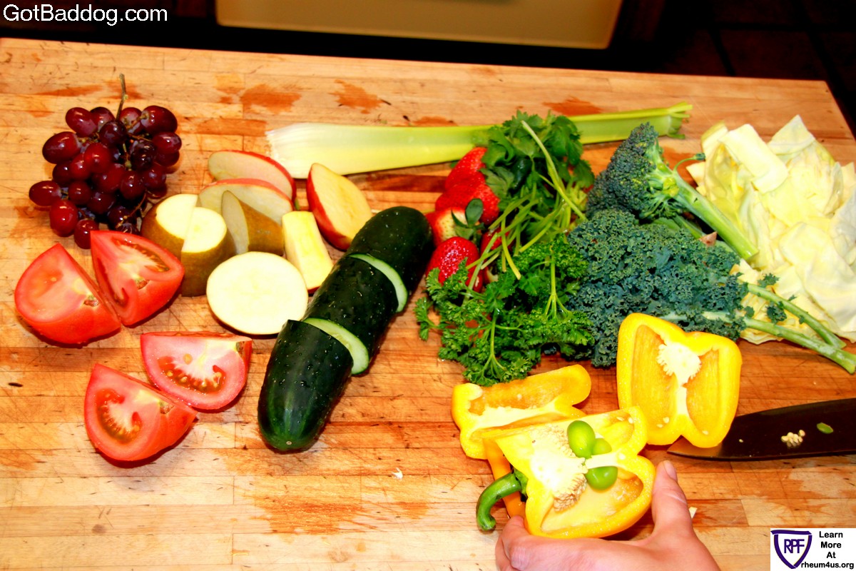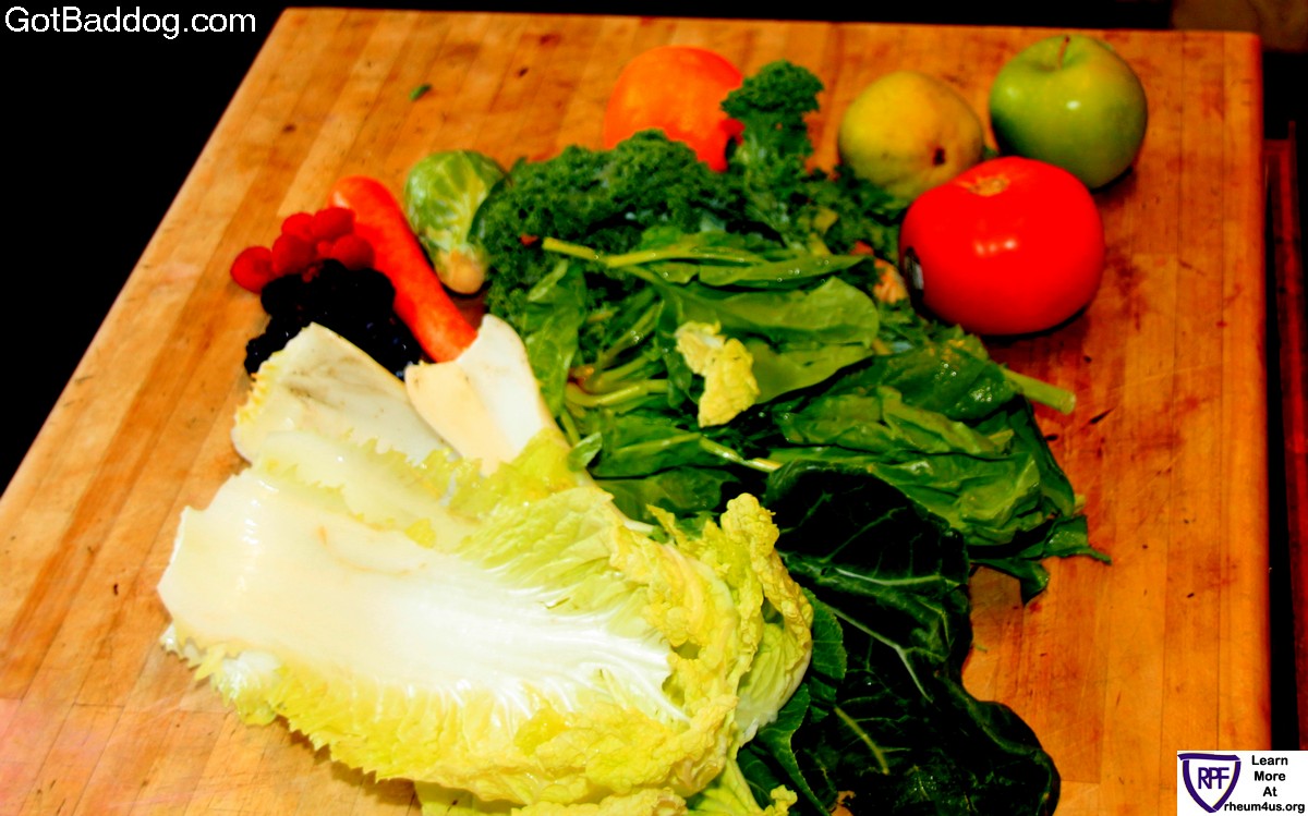 Okay, I know in my last RAD Caregiver post I said that my next article would be discussing stem cell research and Rheumatoid Autoimmune Disease, but we recently started a group on Facebook, I Take Pictures of My Fruits and Vegetables Before I Juice Them, and we have had many people express interest in our new eating habits; in particular, what recipes we use. Well, the fact of the matter is that we do not have any recipes at all. However, we do have a lot of photos, so if you look at them you will see the recipe.