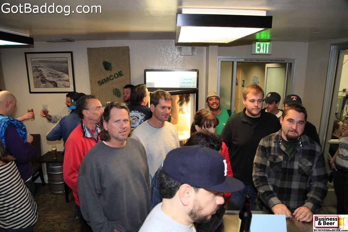 These photos are from the El Segundo Brewing Company (ESBC) Bottle Release Party which was held Friday night, February 1. The Bottle Release Party was to celebrate the two brews they are now providing in 22oz bottles, their ever popular White Dog Wheat IPA and their new Stand Crude Imperial Stout. A Facebook status update that went out a couple hours before the event started stated that it would be their \”biggest shindig yet;\” I don\’t think they knew just how big of a shindig this was going to be.