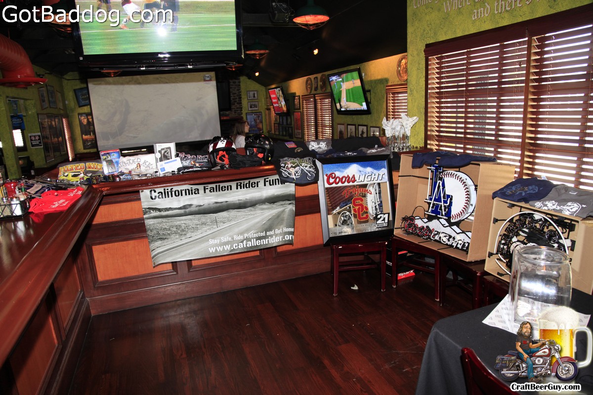 On Saturday July 13, the California Fallen Riders Memorial Fund (CFRMF) held a fundraiser at the Tilted Kilt in Long Beach, CA. The CFRMF is a non-profit that is part of the national network of U.S. Fallen Rider Memorial Associations. Their goals include raising funds to assist the families of fallen riders, to promote motorcycle safety and awareness. Through fundraisers, motorcycle events and donations the California Fallen Riders raise funds to provide direct support to the families of fallen riders. This event was to raise funds for families in Los Angeles and Orange Counties. Funds were raised with raffles and specials on beers provided by Firestone Walker Brewing Company and Coors with the monies going to the CFRMF. There were a few girls there to pose with bikes for a few dollars which also went to the CFRMF.