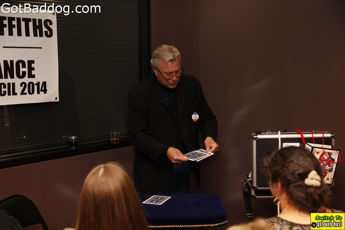 The campaign kickoff fundraiser was a pretty well attended event that included food, beer, wine, speeches and magic performed by Magic Castle performer Steve Silverman. His sleight-of-hand magic was very entertaining. Everyone seemed to have a nice time. If you want to know more about Griffiths\’ position on issues and history with the City of Torrance please visit his website.