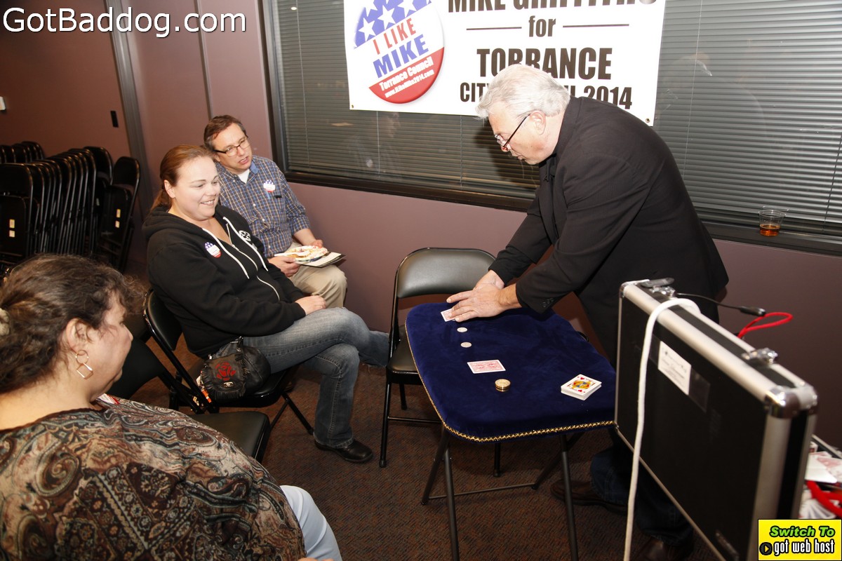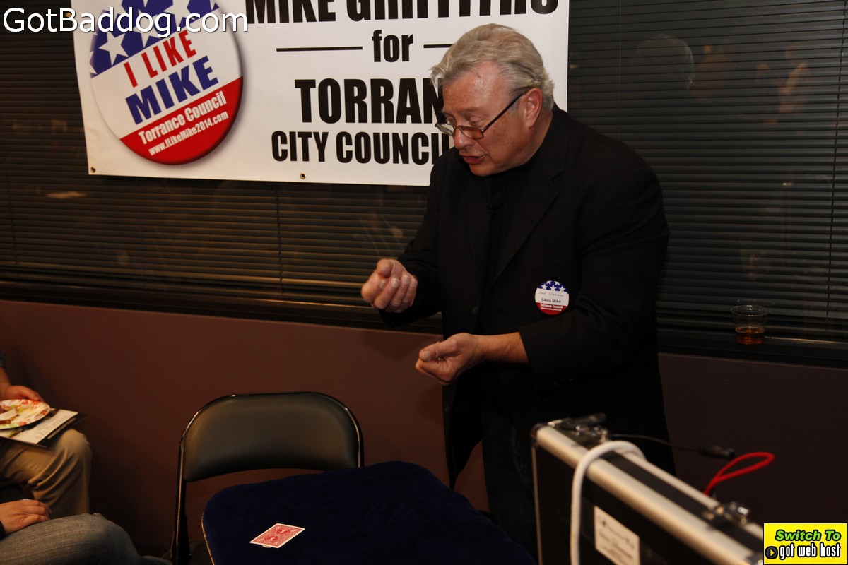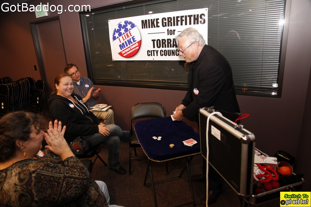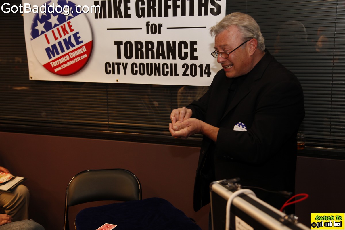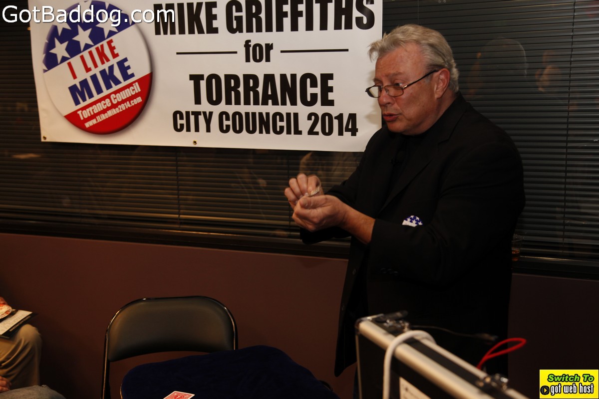 The campaign kickoff fundraiser was a pretty well attended event that included food, beer, wine, speeches and magic performed by Magic Castle performer Steve Silverman. His sleight-of-hand magic was very entertaining. Everyone seemed to have a nice time. If you want to know more about Griffiths\’ position on issues and history with the City of Torrance please visit his website.