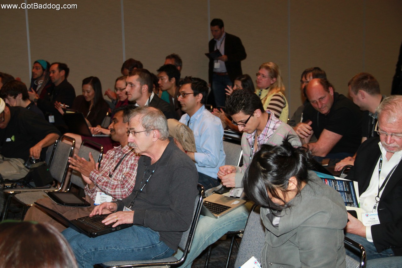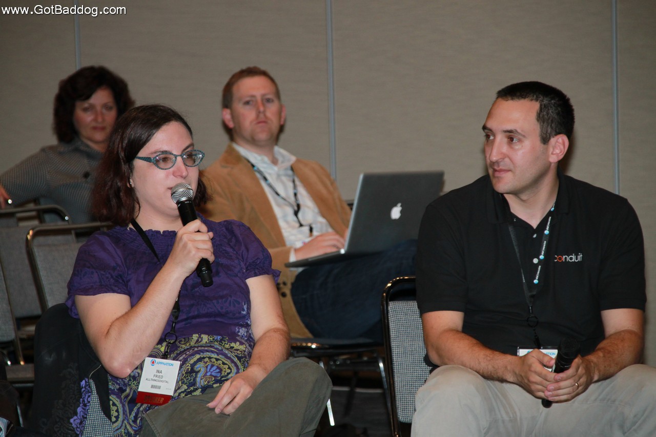 These photos are of the various workshops and the press briefing from Wednesday at the APPNation Conference. One thing that no one can argue, APPNation was non-stop. After the keynotes, interviews and panel discussions they broke for lunch. Well, I guess some people broke for lunch. For others, there were several sponsored lunch workshops. There was also a press briefing and then the workshops really started. For the next four hours there were three workshops every half hour or so. Topics were suited for mobile application developers as well as those that wanted to monetize apps in one way or the other. Other than trying to photograph 20+ workshops, my main problem was trying to decide which one would be most beneficial to our company.