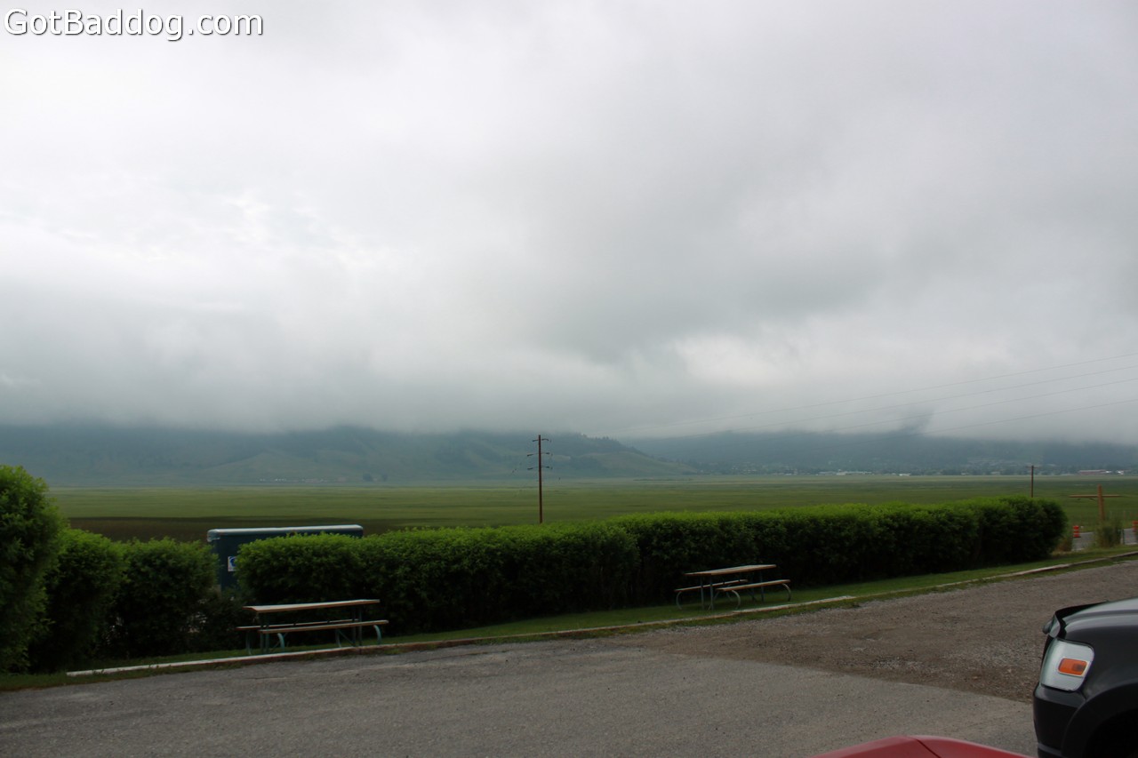 We woke up Wednesday in Jackson Hole, WY. I had less than 40 hours before I had to be at LAX to pick up Tanya. Home was about 1,000 miles from here, if we took the long way. It should not be a problem. It was very overcast in Jackson Hole, but that made for some great photo ops when we got to the mountains overlooking the Snake River and what I think was Swan Valley. We headed into Idaho Falls, where I got to attend my first live cattle auction. After leaving the auction we found out where Idaho Falls got its name. Totally unexpected, but very cool.