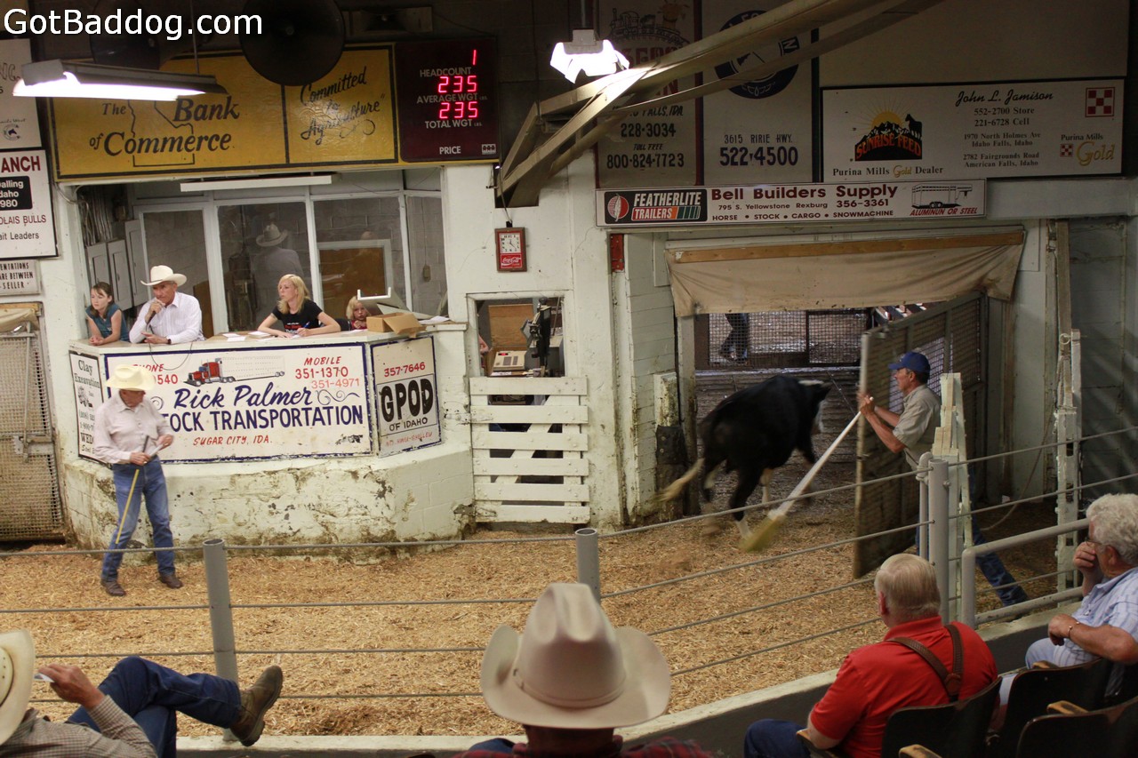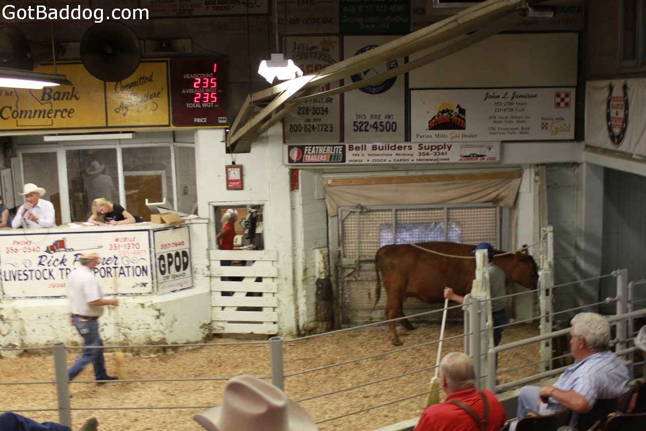 We woke up Wednesday in Jackson Hole, WY. I had less than 40 hours before I had to be at LAX to pick up Tanya. Home was about 1,000 miles from here, if we took the long way. It should not be a problem. It was very overcast in Jackson Hole, but that made for some great photo ops when we got to the mountains overlooking the Snake River and what I think was Swan Valley. We headed into Idaho Falls, where I got to attend my first live cattle auction. After leaving the auction we found out where Idaho Falls got its name. Totally unexpected, but very cool.
