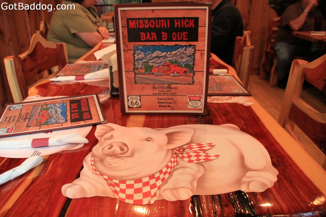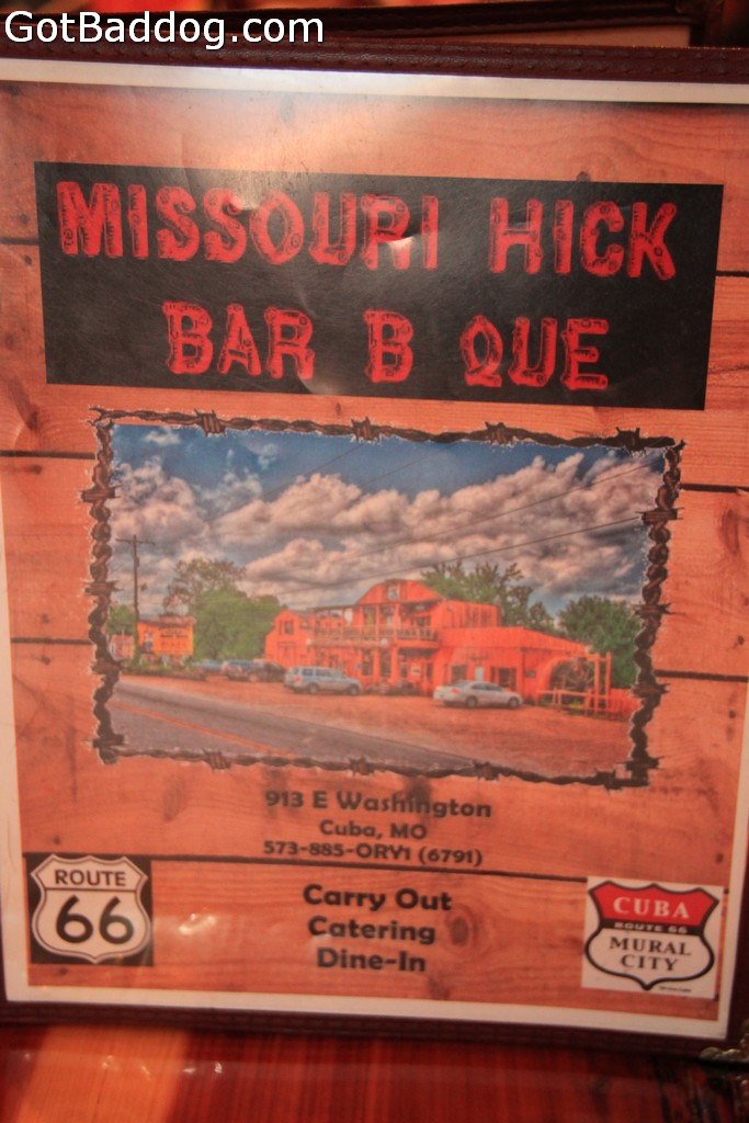 These photos were taken on Route 66 in Missouri. This was on the way to Joplin, MO. I entered St Louis in the late afternoon, so it was not an ideal time to tour. I did find Jellystone Park though, so I had to make a quick stop. I wanted to find some local cuisine and a billboard directed me to Missouri Hick Bar-B-Q in Cuba, MO. Great food. Right next door was a newly renovated Wagon Wheel Motel, so I walked over there and got a room. Would have been better if Tanya was with me though. She would have liked it. The next morning, Buddy and I went for a walk around Cuba and I brought the camera. Pretty cool little town.