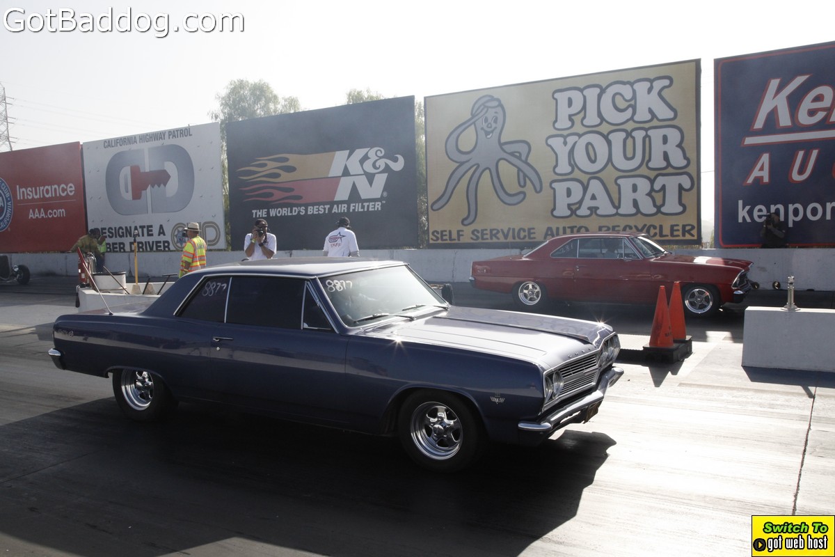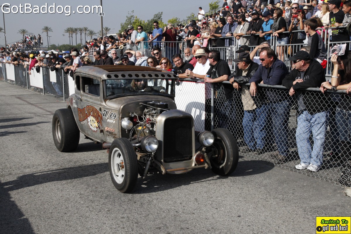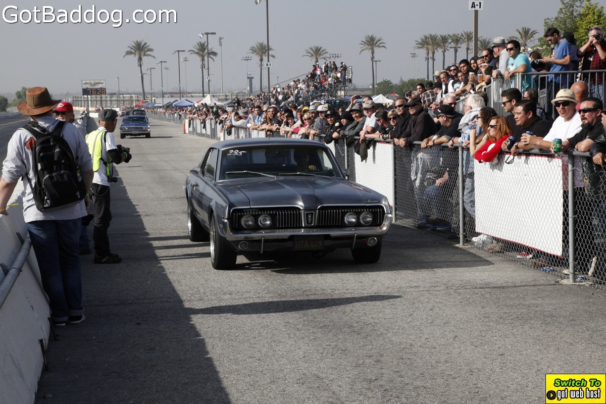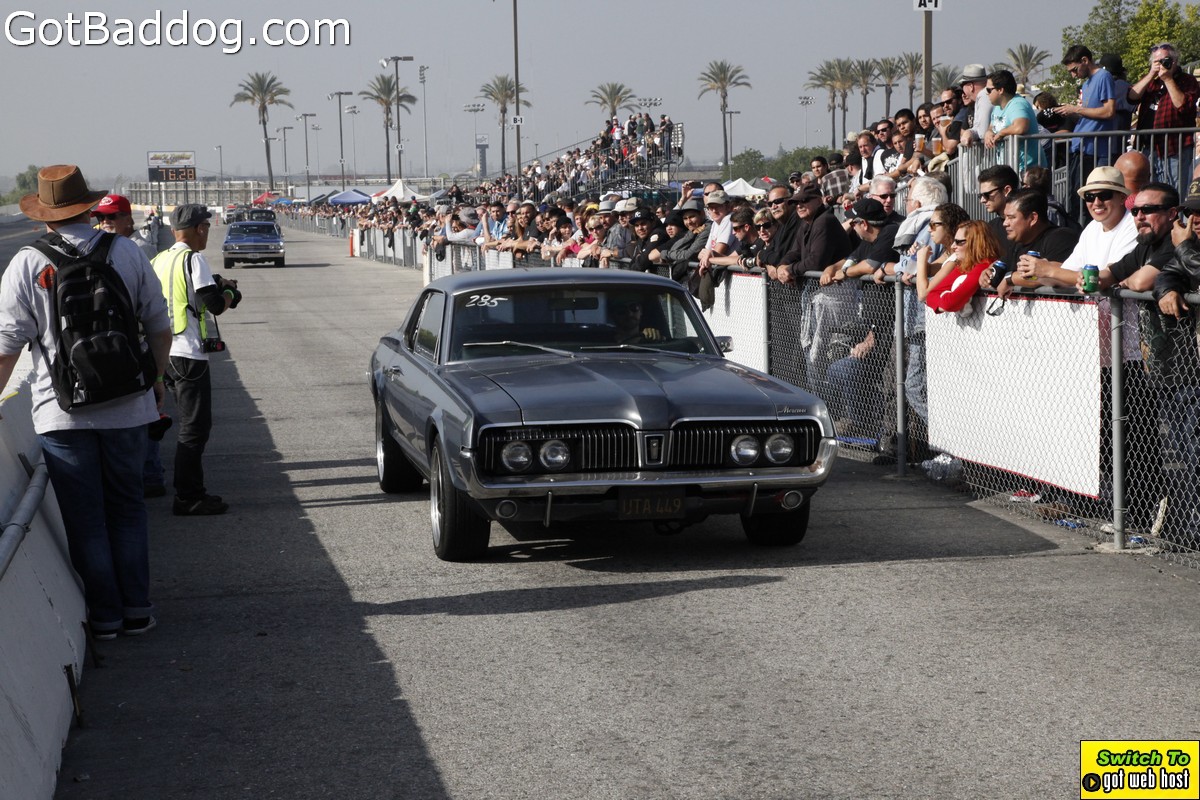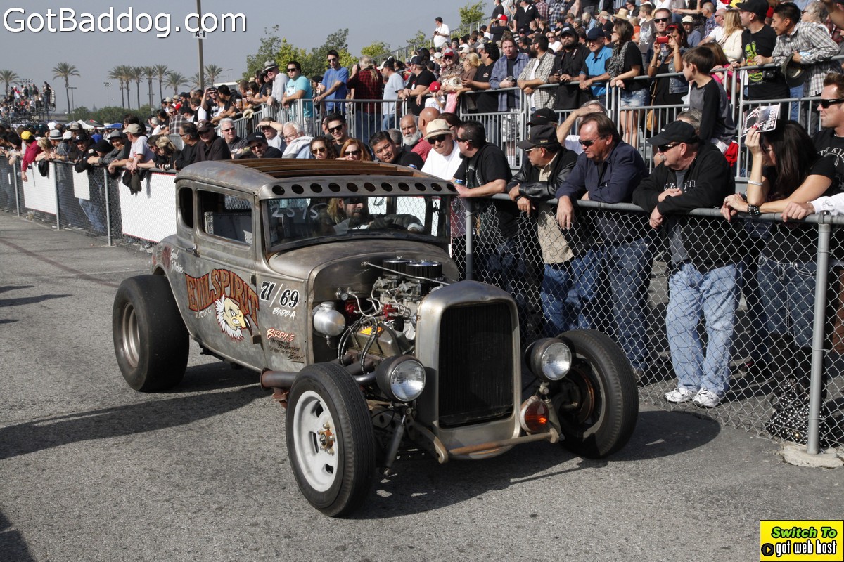 Saturday, December 8, 2012 was the annual Mooneyes Christmas Party, Car show and Drag Races at Irwindale Dragstrip. I am not really sure how long they have been having this event; but I have been photographing it since 2010. It is a fun event. The car show is limited to pre-1965 model years; and the drag races are limited to pre-1969 model years. In addition, there was a Pinup Girl contest, tons of vendors selling everything you could want to customize your hot rod or fuzzy dice for your lowrider as well as food and drink. Live music was provided by Gambler’s Mark, Dead Beat Daddy, Hot Rod Trio and Dynotones.