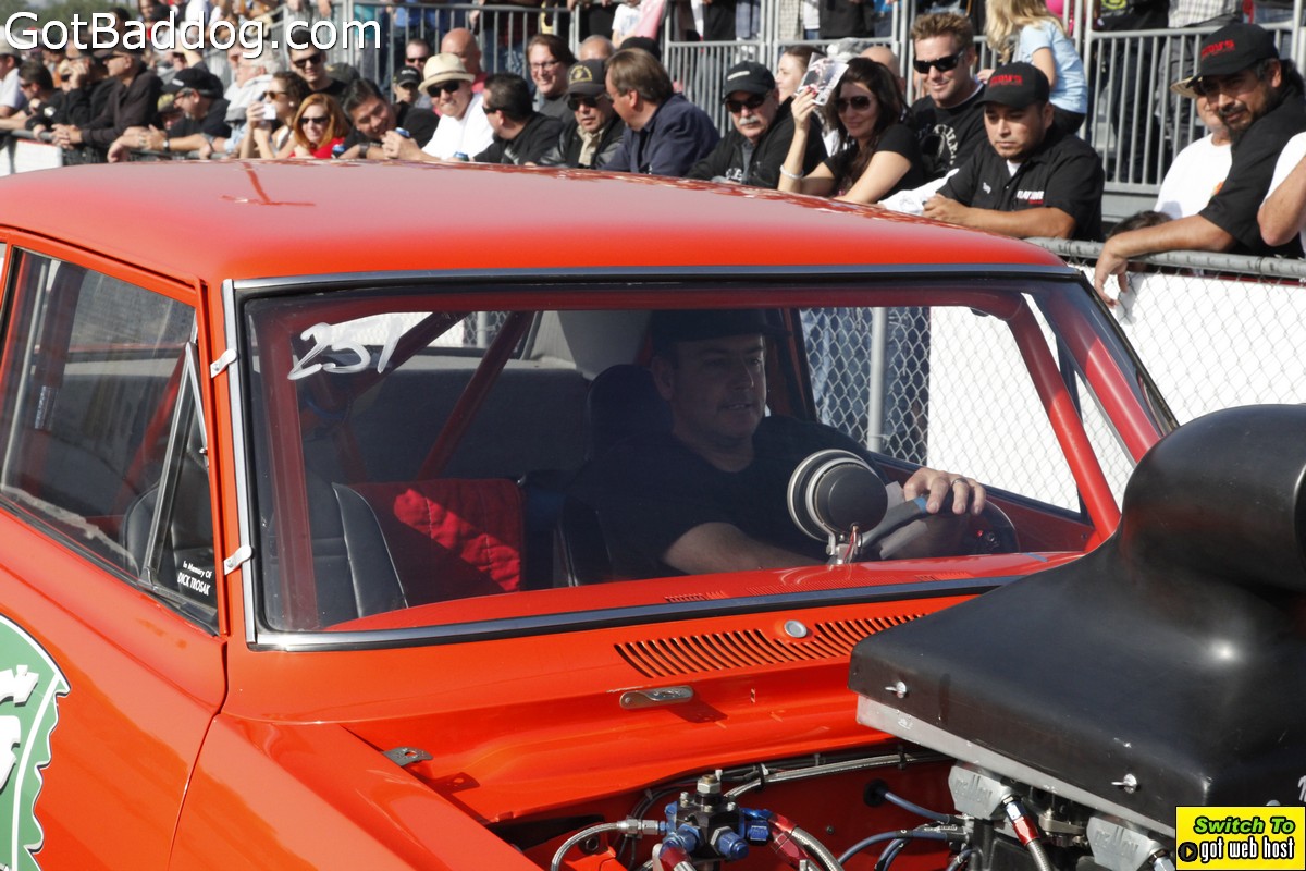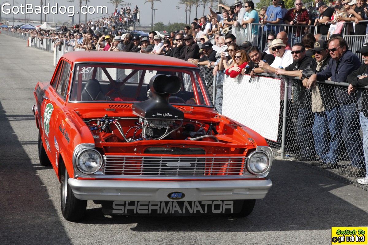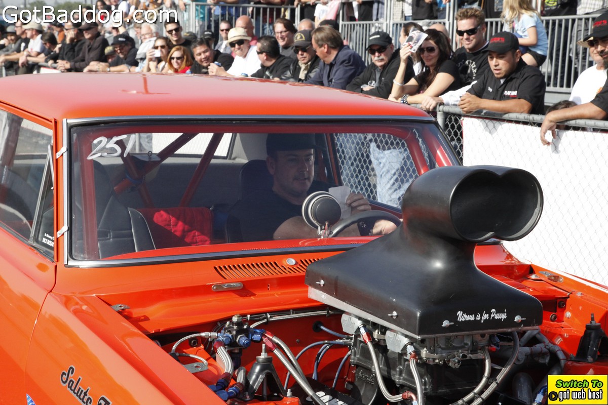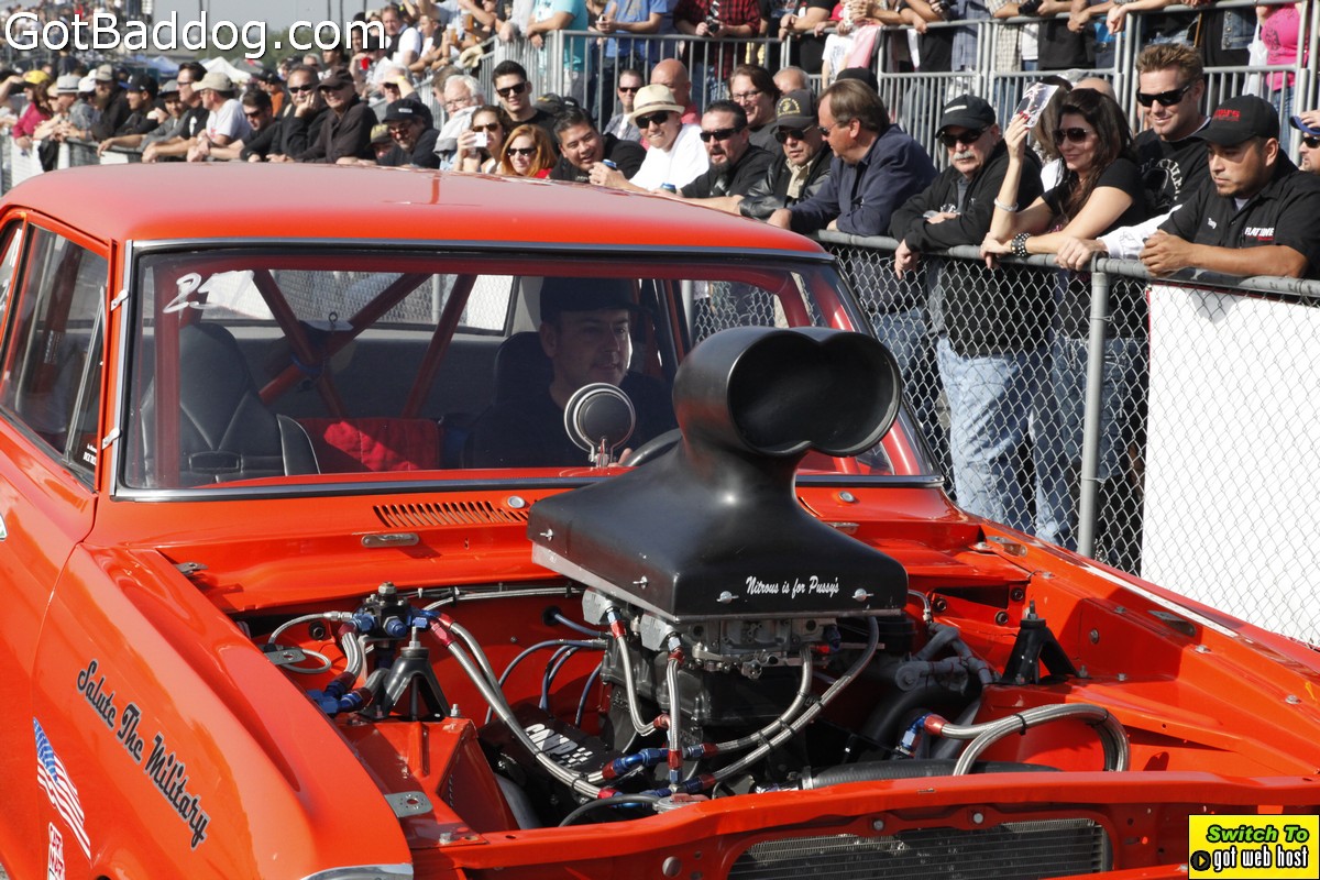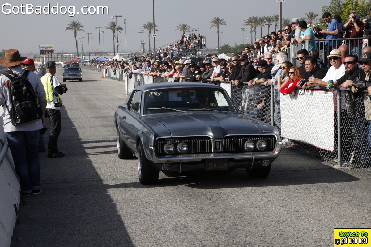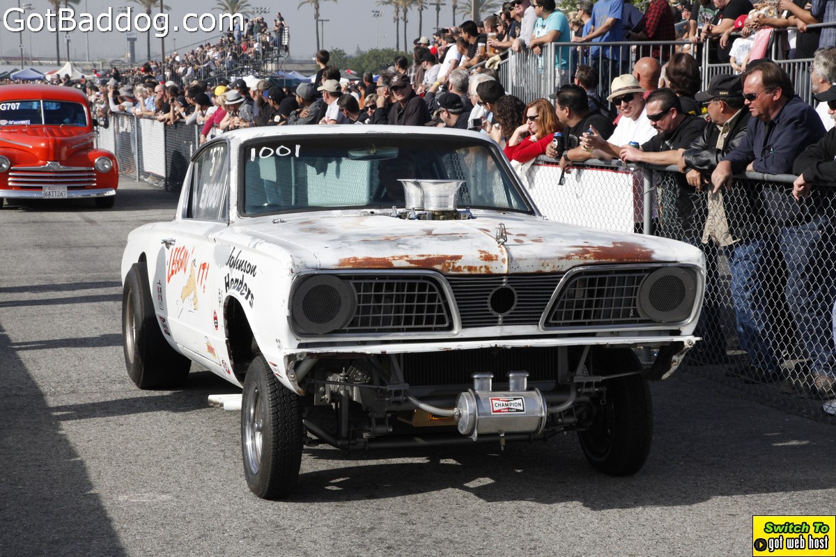 Saturday, December 8, 2012 was the annual Mooneyes Christmas Party, Car show and Drag Races at Irwindale Dragstrip. I am not really sure how long they have been having this event; but I have been photographing it since 2010. It is a fun event. The car show is limited to pre-1965 model years; and the drag races are limited to pre-1969 model years. In addition, there was a Pinup Girl contest, tons of vendors selling everything you could want to customize your hot rod or fuzzy dice for your lowrider as well as food and drink. Live music was provided by Gambler’s Mark, Dead Beat Daddy, Hot Rod Trio and Dynotones.