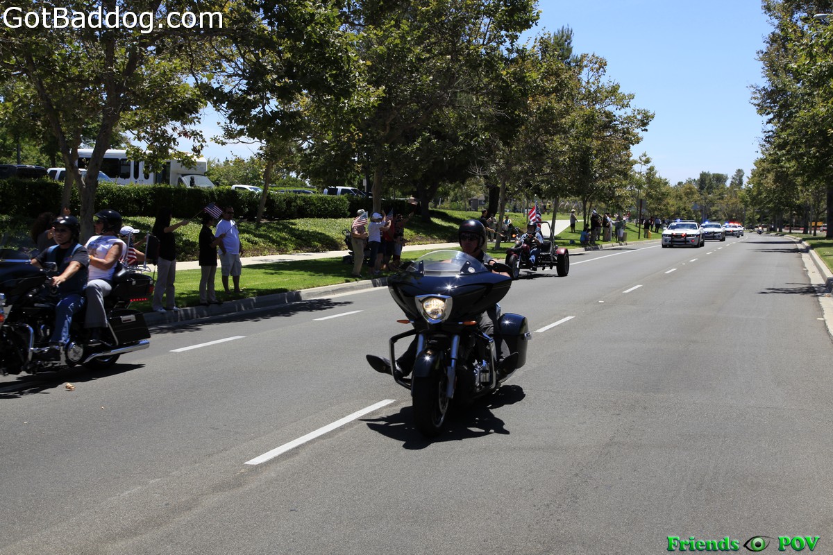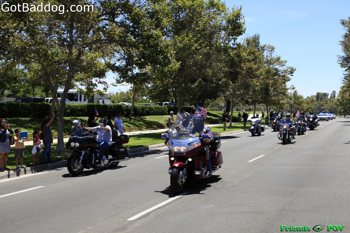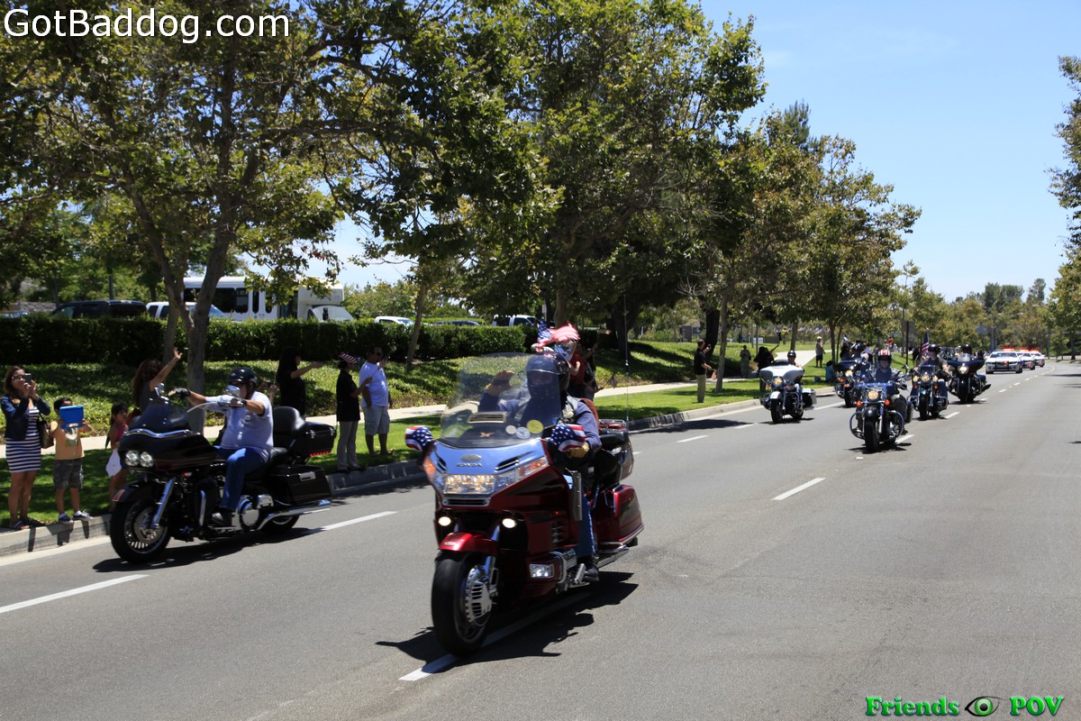 Tuesday afternoon I was alerted to the fact that the traveling replica of the Vietnam Veterans Memorial in Washington D.C. and the Global War on Terror Wall of Remembrance would be arriving in Irvine, CA on Wednesday morning and that they would be escorted by about 700 motorcycle riders that were coming up from Riverside. That sounded like as good an excuse as any for a ride, so I headed down to Irvine to catch the escort as they paraded into the Woodbridge Community Park.