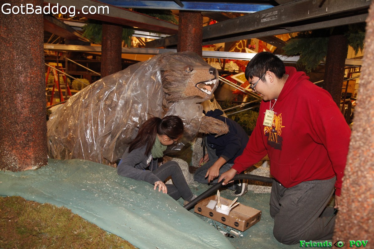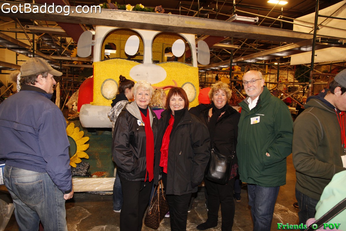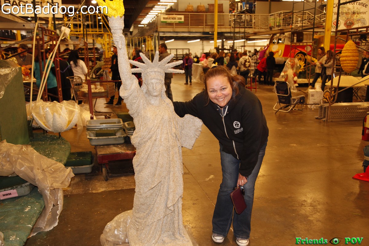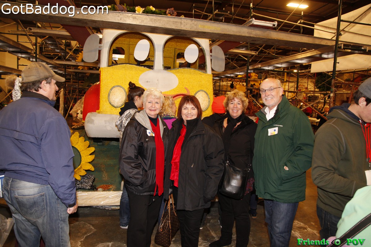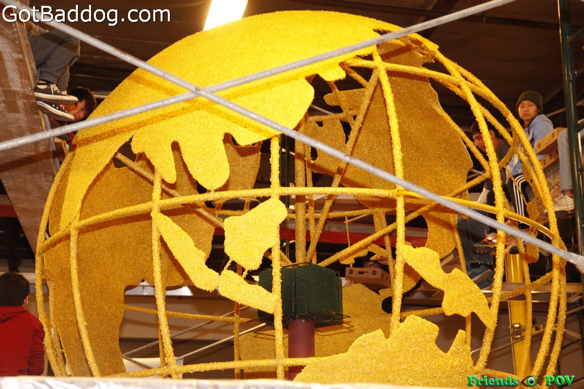 These photos were taken Monday night at Fiesta Parade Floats when the City of Torrance came out to Irwindale to check out the progress on the float they are entering for the 127th Annual Tournament of Roses Parade which will be held Friday morning in Pasadena.