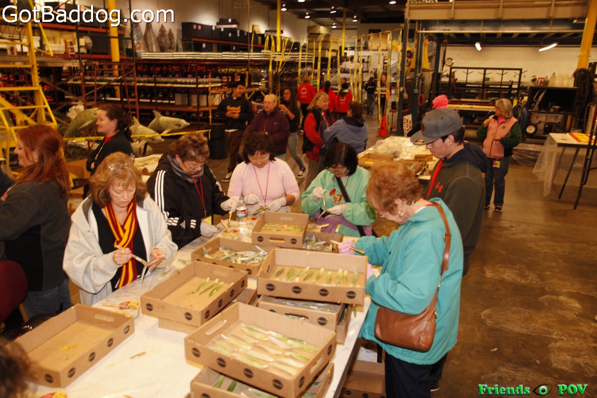 As I was leaving Fiesta Floats last night I noticed another City of Torrance bus was just arriving and it was not until then that I realized that the Torrance buses had been staggered, so I apologize that I left before all of you arrived. In the past, when the city came to visit the floats they were pretty much funneled in and out, whereas last night visitors were allowed to stick around a little more and even check out some of the other floats. From what I have heard, this new policy was very much appreciated by the Torrance visitors.